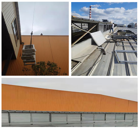 徐州鑫友工控科技發展有限公司承接中策橡膠有限公司的屋面百葉窗工程,工程地點在浙江安吉中策廠區,選用電動平板百葉窗,配備螺桿開窗機,百葉窗為鋁合金材質,表面銀色粉末噴涂處理。10月23日,百葉窗按照標準工序施工完畢,驗收通過。